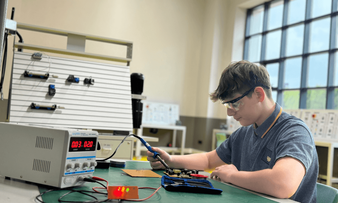 Elektroteknik: Temel elektrik devre elemanlarının elektriksel büyüklükleri, seri ve paralel devrelerin ölçümü ve hesaplamaları, pasif ve yarı iletken devre elemanlarının seçimi yapılır. Öğrenciler; devre elemanlarının multimetre, osilaskop gibi ölçü aletlerinden faydalanarak nasıl ölçeceğini ve sağlamlık kontrollerinin nasıl yapılacağı öğrenirler.